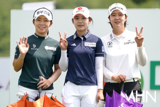 김수지(동부건설), 황유민(롯데), 박지영(한국토지신탁)이 1번홀 경기를 펼치고 있다.