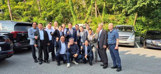 정청래 더불어민주당 의원은 14일 페이스북에 “이재명 소년공이 다녔던 오리엔트 시계 공장 친구들을 결혼식장 밖에서 만났다”고 전했다. 정청래 의원 페이스북 사진 |