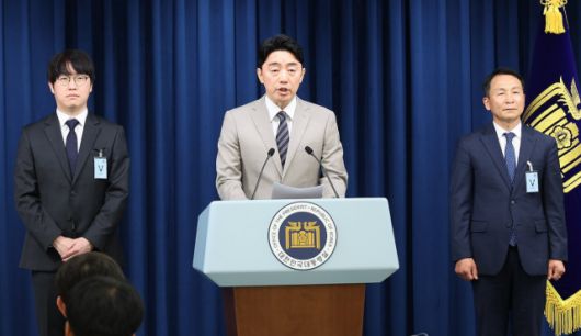강훈식 대통령 비서실장이 15일 서울 용산구 대통령실에서 인선을 발표했다. 왼쪽부터 하정우 AI미래기획수석, 강 비서실장, 김현종 국가안보실 1차장. [사진=연합뉴스] |