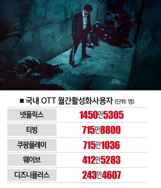 중복 사용자를 고려하지 않은 단순 계산이긴 하지만, 두 서비스의 MAU를 더하면 총 1128만4083명으로 규모 면에선 업계 1위인 넷플릭스(1450만5305명)에 크게 밀리지 않는다.