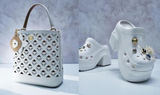 메트로시티 '러브 퍼포레이트' 컬렉션 가방(왼쪽)과 러버 힐 슈즈 [사진=메트로시티] |