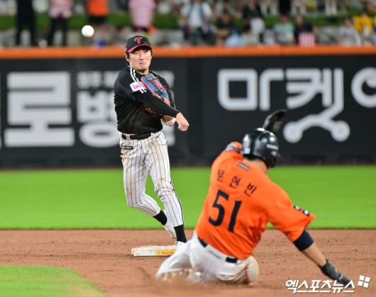궁지에 몰린 상황에서도 한화에게 찬스는 있었다. 11회말 박명근 상대 김태연의 안타 후 이진영의 병살타로 2아웃. 하지만 안치홍이 좌전 2루타를 치고 나가 기회를 살렸다. 곧바로 이재원의 안타가 터졌다. 좌익수 앞, 그리 깊은 타구는 아니었다.