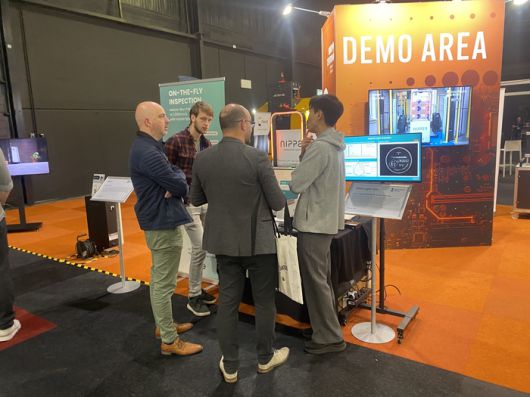 네덜란드 스헤르토헨보스에서 열린 '비전로봇틱&모션'에서 아이코어 직원이 부스를 방문한 해외 바이어와 상담하고 있다. |