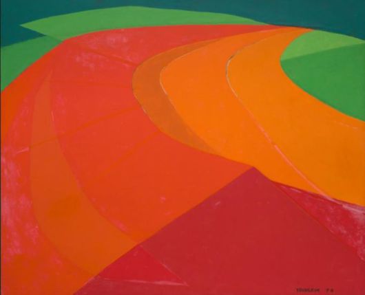 1974년작으로 곡선적인 움직임이 두드러진 '작품'은 색면의 표현에 있어서 그 형태와 색감이 더욱 짜임새있게 압축됐다. '산에는 어떤 것이든 다 있다'는 유영국의 말처럼 봉우리의 삼각형과 능선의 곡선, 원근의 면, 그리고 다채로운 색이 절묘하게 어우러진 대표작이다.