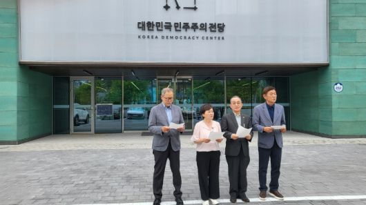 또 "지역의 민주단체들은 잘못된 행태가 바뀌지 않는다면 민주주의전당 개관과 운영에 관해 일체의 참여를 거부하겠다"며 "대한민국민주주의전당이라는 이름에 걸맞는 시설과 운영자문위원 인선에 개선이 없는 한 개관을 반대한다"고 주장했다.