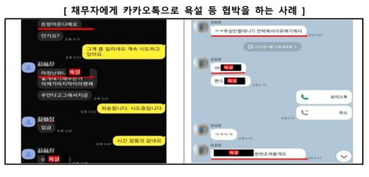 채무자나 가족·지인·직장동료 등에게 욕설·협박을 하거나 반복적으로 야간에 연락하거나 채무자 외 제3자에게 채무 사실을 알리거나 채무의 대리 변제를 요구하는 등 불법 채권추심을 당한 경우, 카카오톡 앱을 통해 즉시 신고가 가능하다.