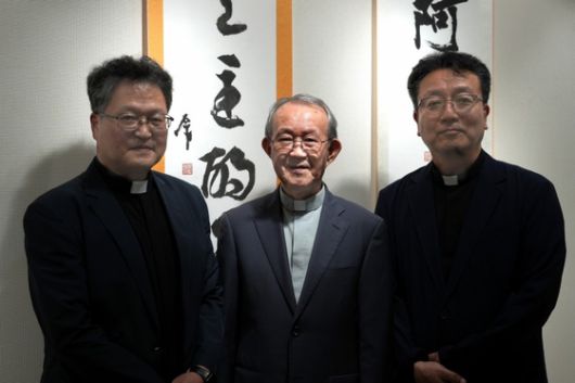 릴레이 서예전을 여는 신부들. 왼쪽부터 천주교 의정부교구 정성훈 신부, 성사전담사제 한만옥 신부, 교하본당 주임 도현우 신부. 사진 천주교 의정부 교구 |