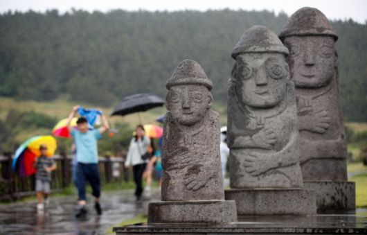 올해 첫 장맛비가 내리는 지난 12일 오전 제주 서귀포시 대정읍 송악산 둘레길에서 우산을 쓴 관광객들이 걸어가고 있다./사진=뉴시스. |