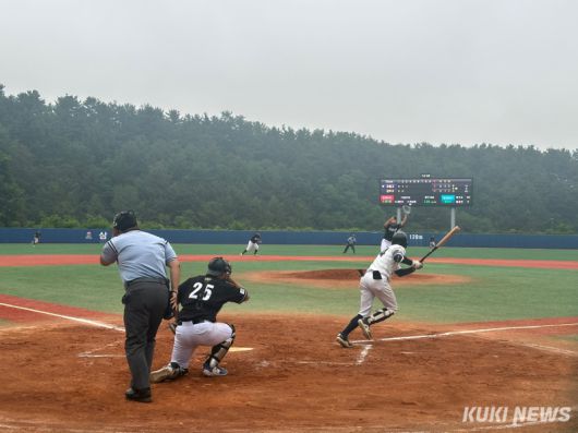 15일 강원 삼척야구장에서 열린 제60회 강원도민체전 고등부 야구경기에서 강릉고 타자가 설악고 투수의 공을 타격하고 있다. |