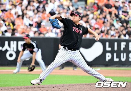 [OSEN=대전, 지형준 기자] 15일 대전 한화생명볼파크에서 2025 신한 SOL Bank KBO리그 한화 이글스와 LG 트윈스의 경기가 열렸다. 이날 한화는 문동주, LG는 송승기를 선발로 내세웠다. 1회말 LG 송승기가 역투하고 있다. 2025.06.15 /jpnews@osen.co.kr