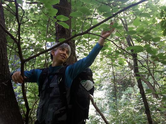 필자가 산행 중 야생 뽕나무 열매 오디를 따고 있다. 필자 제공
