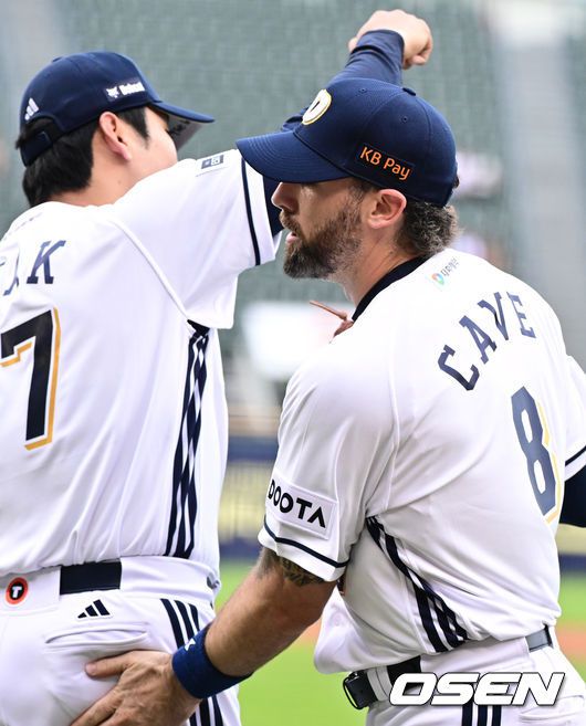 [사진]케이브, '곽빈 도운 호수비'