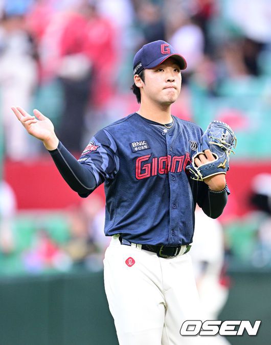 [OSEN=인천, 최규한 기자] 15일 인천 SSG랜더스필드에서 ‘2025 신한 SOL Bank KBO리그’ SSG 랜더스와 롯데 자이언츠의 경기가 열렸다. 홈팀 SSG은 드류 앤더슨, 방문팀 롯데는 이민석을 선발로 내세웠다. 2회말 SSG 공격을 무실점으로 막아낸 롯데 선발 이민석이 더그아웃으로 향하고 있다. 2025.06.15 / dreamer@osen.co.kr