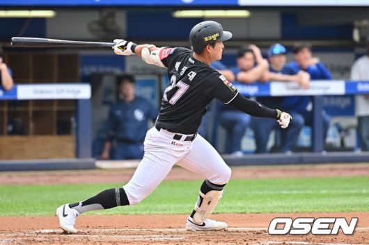 [OSEN=대구, 이석우 기자] 15일 대구삼성라이온즈파크에서 2025 신한 SOL 뱅크 KBO 리그 삼성 라이온즈와 KT 위즈의 경기가 열렸다. 홈팀 삼성은 최원태가, 방문팀 KT는 고영표가 선발 출전했다. KT 위즈 배정대가 2회초 2사 1,2루 좌익수 왼쪽 2타점 2루타를 치고 있다. 2025.06.15 / foto0307@osen.co.kr