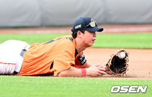 [OSEN=대전, 지형준 기자] 15일 대전 한화생명볼파크에서 2025 신한 SOL Bank KBO리그 한화 이글스와 LG 트윈스의 경기가 열렸다. 이날 한화는 문동주, LG는 송승기를 선발로 내세웠다. 3회초 1사 만루에서 한화 노시환이 LG 김현수의 선제 1타점 적시타에 몸날려 잡아내고 있다. 2025.06.15 /jpnews@osen.co.kr