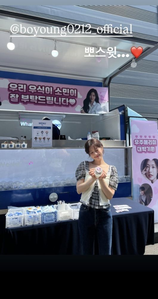 배우 박보영이 ‘우주메리미’ 커플 정소민·최우식을 응원하며 달달한 간식차를 보냈다. 사진=SNS |