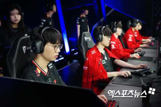 블루 진영 T1은 크산테·리신·애니·자야 라칸 조합을, 레드 진영 HLE는 나르·니달리·갈리오·루시안·브라움 조합을 완성했다.