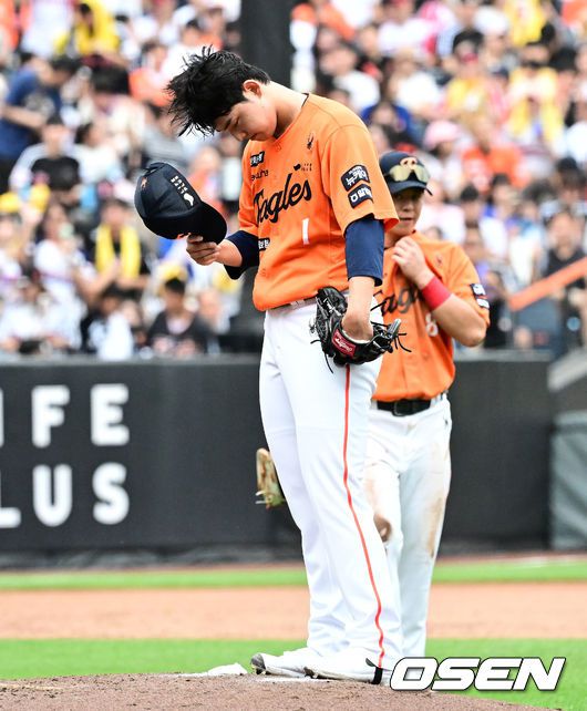 [OSEN=대전, 지형준 기자] 15일 대전 한화생명볼파크에서 2025 신한 SOL Bank KBO리그 한화 이글스와 LG 트윈스의 경기가 열렸다. 이날 한화는 문동주, LG는 송승기를 선발로 내세웠다. 4회초 2사 만루에서 한화 문동주가 LG 김현수에 2타점 좌전 적시타 허용하며 강판당하고 있다. 2025.06.15 /jpnews@osen.co.kr