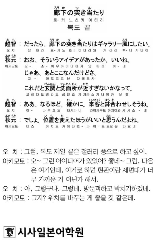 [시사일본어학원의 초단기 일본어 회화] 복도 끝