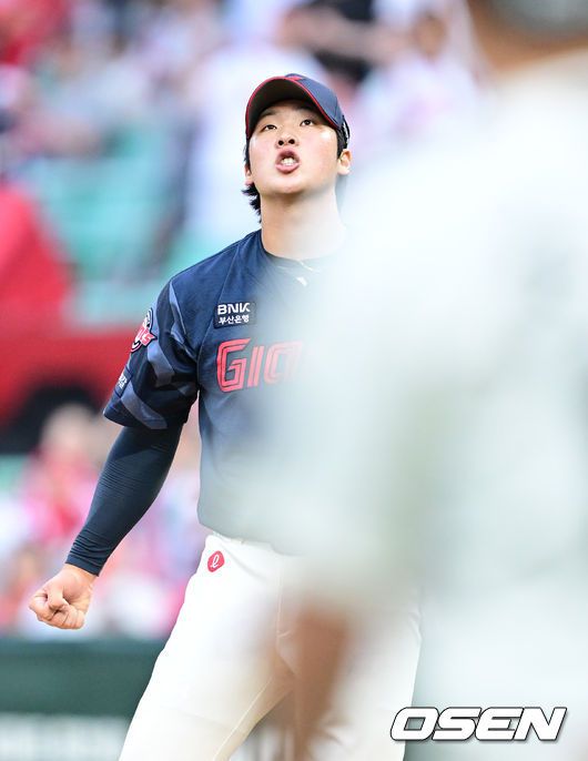 4회말 2사 만루 상황 롯데 선발 이민석이 SSG 김성욱을 삼진으로 이끌며 실점없이 이닝을 마친 뒤 더그아웃으로 향하고 있다. 2025.06.15 / dreamer@osen.co.kr