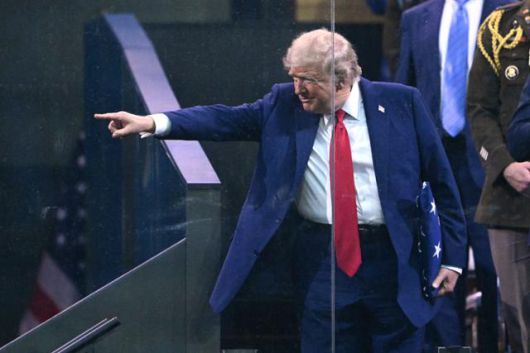 도널드 트럼프 미국 대통령이 자신의 생일이자 미 육군 창설 250주년인 14일 워싱턴에서 열병식을 열고 지지자들에게 인사하고 있다. 워싱턴=AFP 연합뉴스 |