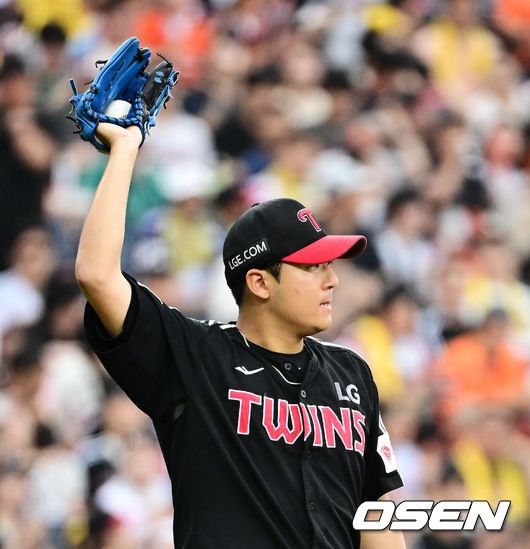 [OSEN=대전, 지형준 기자] 15일 대전 한화생명볼파크에서 2025 신한 SOL Bank KBO리그 한화 이글스와 LG 트윈스의 경기가 열렸다. 이날 한화는 문동주, LG는 송승기를 선발로 내세웠다. 4회말 1사 1루에서 LG 송승기가 한화 노시환에 볼넷을 허용하며 아쉬워하고 있다. 2025.06.15 /jpnews@osen.co.kr