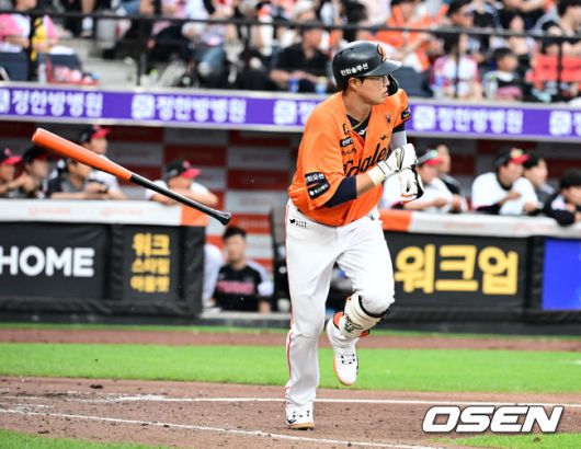 [OSEN=대전, 지형준 기자] 15일 대전 한화생명볼파크에서 2025 신한 SOL Bank KBO리그 한화 이글스와 LG 트윈스의 경기가 열렸다. 이날 한화는 문동주, LG는 송승기를 선발로 내세웠다. 4회말 1사 1,2루에서 한화 채은성이 좌전 안타를 날리고 있다. 2025.06.15 /jpnews@osen.co.kr