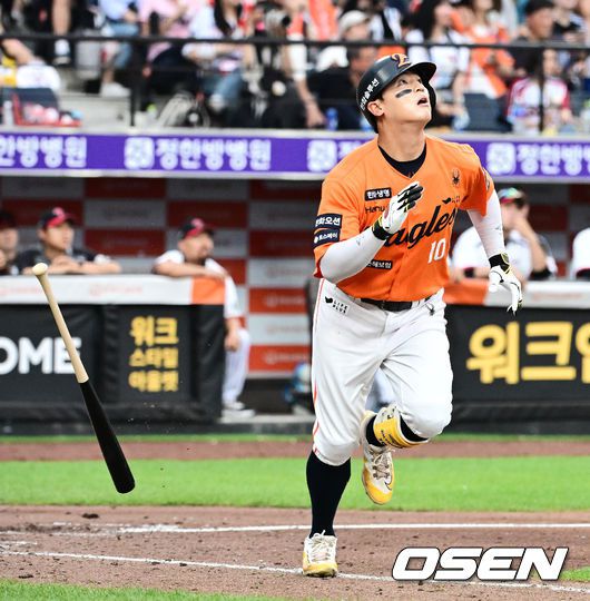 [OSEN=대전, 지형준 기자] 15일 대전 한화생명볼파크에서 2025 신한 SOL Bank KBO리그 한화 이글스와 LG 트윈스의 경기가 열렸다. 이날 한화는 문동주, LG는 송승기를 선발로 내세웠다. 4회말 1사 만루에서 한화 이진영이 1타점 희생플라이를 날리고 있다. 2025.06.15 /jpnews@osen.co.kr
