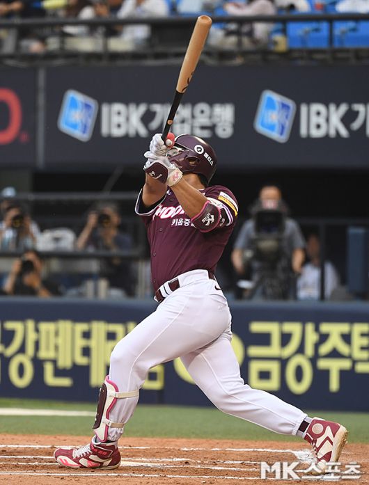 15일 오후 서울 잠실야구장에서 ‘2025 KBO리그’ 키움 히어로즈와 두산 베어스의 경기가 열렸다. 6회초 1사 1루에서 키움 임지열이 투런포를 날리고 있다. 잠실(서울)=천정환 MK스포츠 기자 [ⓒ MK스포츠, 무단전재 및 재배포 금지]