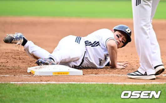 [OSEN=잠실, 조은정 기자]15일 서울 잠실야구장에서 2025 신한 SOL Bank KBO리그 두산 베어스와 키움 히어로즈의 경기가 열렸다. 이날 홈팀 두산은 곽빈을, 원정팀 키움은 정현우를 선발 투수로 내세웠다. 5회말 2사 1,2루 두산 양의지가 키움 포수 김건희에게 견제사 당한 뒤 아쉬워하고 있다. 미디오 판독 요청이 있었으나 원심 유지. 2025.06.15 /cej@osen.co.kr