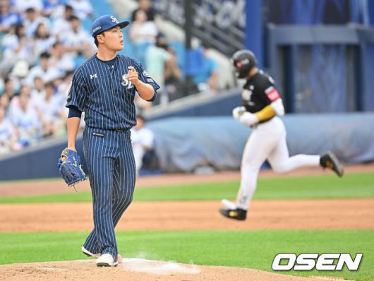 [OSEN=대구, 이석우 기자] 15일 대구삼성라이온즈파크에서 2025 신한 SOL 뱅크 KBO 리그 삼성 라이온즈와 KT 위즈의 경기가 열렸다. 홈팀 삼성은 최원태가, 방문팀 KT는 고영표가 선발 출전했다. 삼성 라이온즈 이승민이 5회초 무사 1루 KT 위즈 안현민에게 좌월 2점 홈런을 맞고 아쉬워하고 있다. 2025.06.15 / foto0307@osen.co.kr