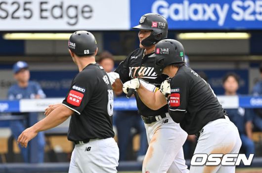 KT 위즈 안현민이 5회초 무사 1루 좌월 2점 홈런을 치고 하이파이브를 하고 있다. 2025.06.15 / foto0307@osen.co.kr