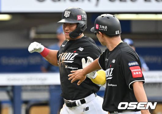KT 위즈 안현민이 5회초 무사 1루 좌월 2점 홈런을 치고 하이파이브를 하고 있다. 2025.06.15 / foto0307@osen.co.kr