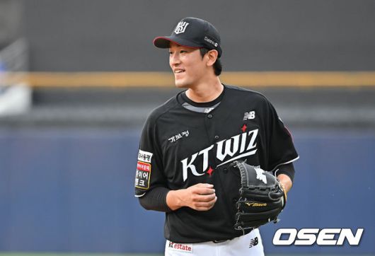 [OSEN=대구, 이석우 기자] 15일 대구삼성라이온즈파크에서 2025 신한 SOL 뱅크 KBO 리그 삼성 라이온즈와 KT 위즈의 경기가 열렸다. 홈팀 삼성은 최원태가, 방문팀 KT는 고영표가 선발 출전했다. KT 위즈 고영표가 5회말 2사 1,2루 삼성 라이온즈 류지혁을 1루수 땅볼로 잡고 미소 짓고 있다. 2025.06.15 / foto0307@osen.co.kr