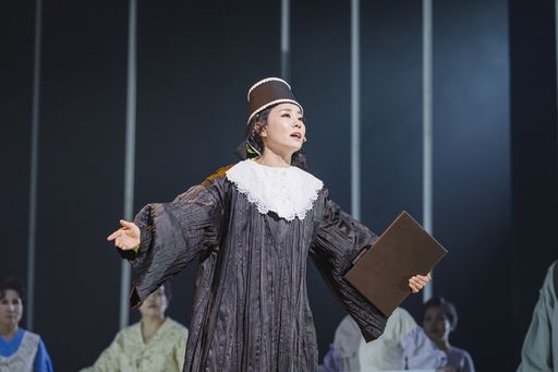 샤일록 역시 딸에 대한 애정, 유대인으로서 평생 받은 멸시에 대한 복수심과 반감 등은 찾아볼 수 없는 인물이다. 99개를 가지고도 1개를 뺏어 100개를 채우려는 순수한 악인일 따름이다. 극 내내 감정을 절제하다 마지막 순간에야 반성하는 대신 “돈이면 다 되는 세상에 다시 또 태어나서 만세 영화 누리리라”며 독기를 내뿜는데 국립창극단 간판배우 김준수가 노래와 연기로 명불허전을 입증한다.