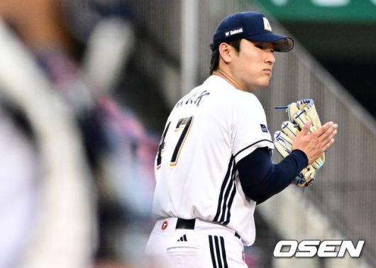 [OSEN=잠실, 조은정 기자]15일 서울 잠실야구장에서 2025 신한 SOL Bank KBO리그 두산 베어스와 키움 히어로즈의 경기가 열렸다. 이날 홈팀 두산은 곽빈을, 원정팀 키움은 정현우를 선발 투수로 내세웠다. 7회초 무사 1루 두산 곽빈이 유격수 이유찬이 호수비로 키움 전태현을 아웃시키자 기뻐하고 있다. 2025.06.15 /cej@osen.co.kr