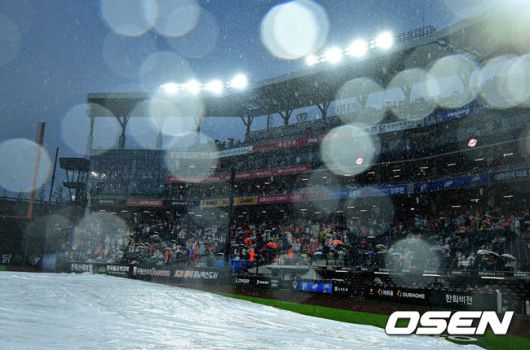 [사진]폭우로 중단된 미리 보는 한국시리즈, 속행 가능할까?