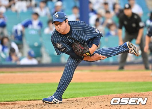 [OSEN=대구, 이석우 기자] 15일 대구삼성라이온즈파크에서 2025 신한 SOL 뱅크 KBO 리그 삼성 라이온즈와 KT 위즈의 경기가 열렸다. 홈팀 삼성은 최원태가, 방문팀 KT는 고영표가 선발 출전했다. 삼성 라이온즈 김대호가 역투하고 있다. 2025.06.15 / foto0307@osen.co.kr