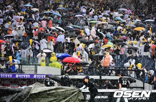 5회말 1사 2루에서 한화 채은성 타석에 폭우로 경기가 중단되고 있다. 2025.06.15 /jpnews@osen.co.kr