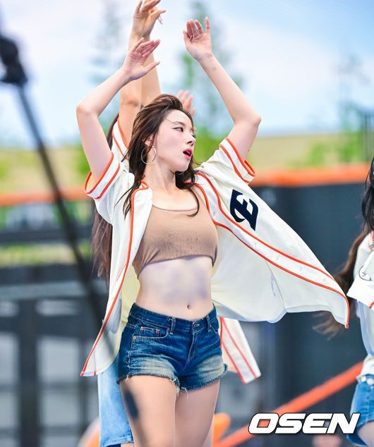 [OSEN=대전, 지형준 기자] 15일 대전 한화생명볼파크에서 2025 신한 SOL Bank KBO리그 한화 이글스와 LG 트윈스의 경기가 열렸다. 이날 한화는 문동주, LG는 송승기를 선발로 내세웠다. 한화 치어리더 하지원이 응원 무대를 선보이고 있다. 2025.06.15 /jpnews@osen.co.kr