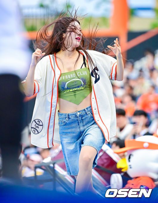 한화 치어리더 김연정이 응원 무대를 선보이고 있다. 2025.06.15 /jpnews@osen.co.kr