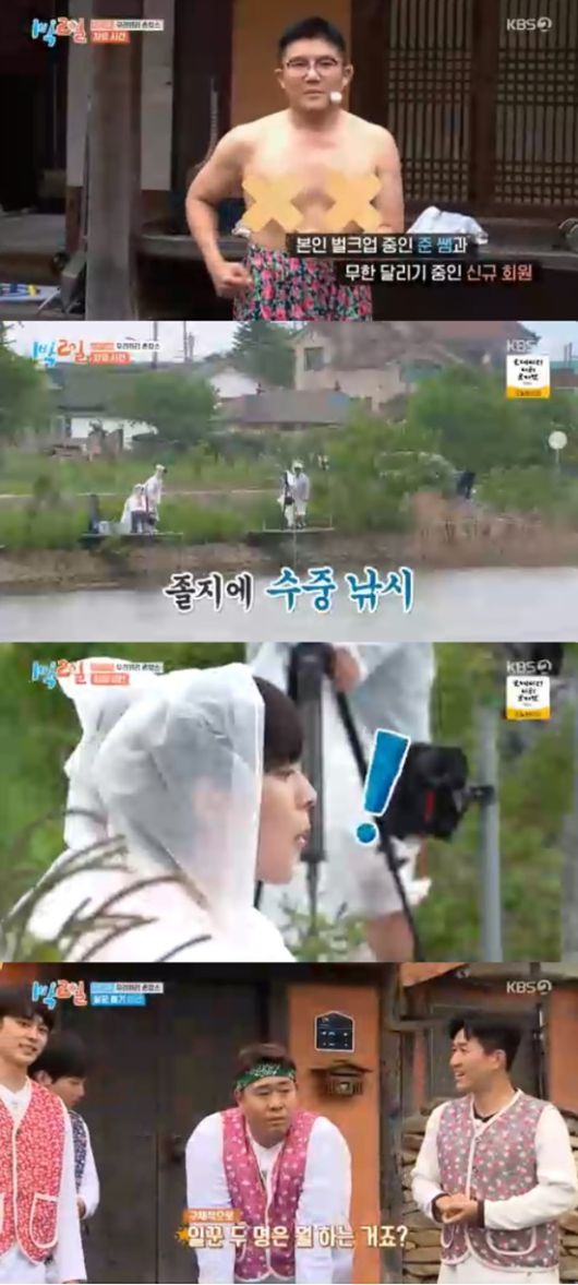 낚시를 하러 간 김종민과 유선호는 비가 내리면서 수중 낚시를 하고 있었다.