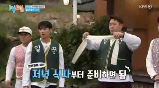 일꾼이 된 문세윤과 이준은 일꾼 옷을 입고 두건까지 했다.