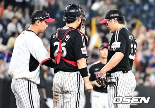 [OSEN=대전, 지형준 기자] 15일 대전 한화생명볼파크에서 2025 신한 SOL Bank KBO리그 한화 이글스와 LG 트윈스의 경기가 열렸다. 이날 한화는 문동주, LG는 송승기를 선발로 내세웠다. 5회말 2사 1루에서 LG 이지강이 한화 이도윤에 1타점 적시 2루타를 허용하며 교체되고 있다. 2025.06.15 /jpnews@osen.co.kr