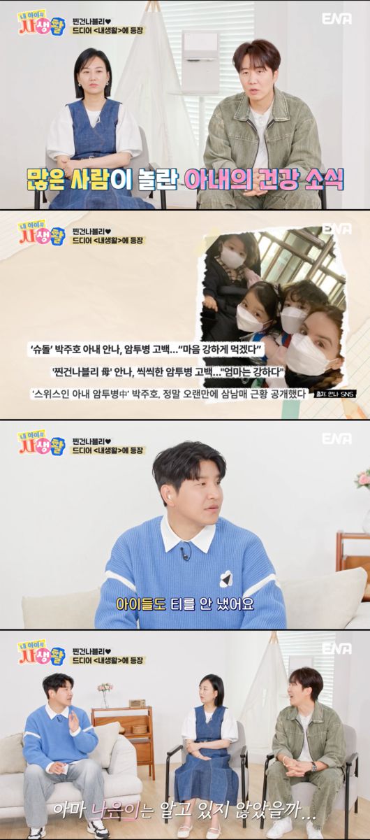 박주호는 아내가 암투병을 하면서 아이들에게 아픈 모습을 보이지 않으려 노력했다고 밝혔다. 박주호는 “아이들도 티를 안냈다. (엄마가 아픈 걸) 아는지 모르는지 모르겠지만. 나은이는 알고 있지 않을까”라고 덧붙였다.