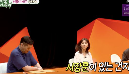 이상형을 묻자, 장희진은 “깔끔하고 재테크 잘하는 남자가 좋다”고 답했는데, 이 대목에서 신동엽이 곧바로 “공교롭게도 옆에 서장훈 있다. 염두에 둔 발언 아니냐”며 분위기를 몰아가 웃음을 자아냈다.