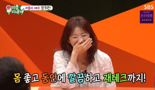 또 신동엽은 "장희진이 깔끔하고 재테크를 잘하는 사람을 이상형으로 꼽았다"라고 말했다. 이에 장희진은 "정리정돈을 잘하는 스타일이어서 기왕이면 깔끔하면 좋다. 재테크도 제가 잘 못하다 보니 잘 하는 남자들이 매력이 있더라"고 설명했다.