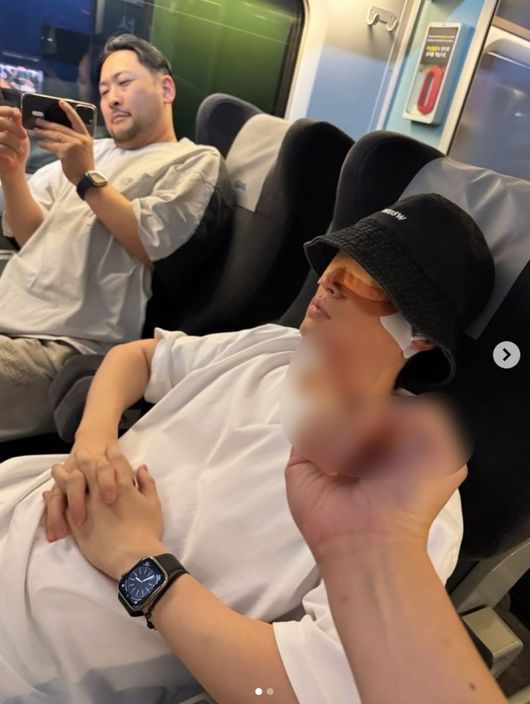 타블로가 공개한 또 다른 사진에는 그를 향해 손가락을 치켜 든 사진이 멤버 투컷임이 담겨 있었다. 그는 아이처럼 웃으면서 자고 있는 타블로와 자신의 손을 사진으로 남겼다.