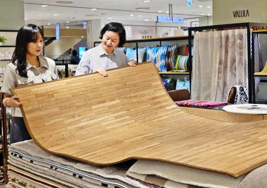‘발릴라’ 매장에서는 천연 오크나무로 만든 자리를, ‘세컨드M’에서는 대자리 등 여름시즌 침구를 20% 할인 판매한다.