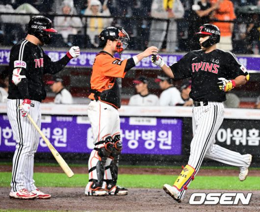 [OSEN=대전, 지형준 기자] 프로야구 한화 이글스가LG 트윈스를 꺾고 32일 만에 1위에 등극했다. 5회말 도중폭우가 쏟아져104분 경기가 중단됐다가 재개됐다.
